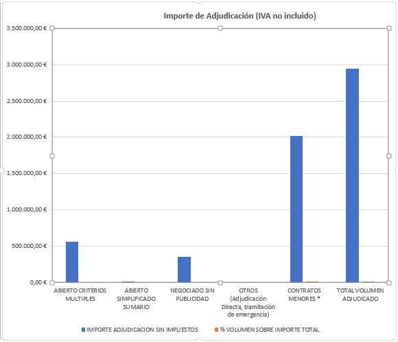 * Están incluidos los contratos menores de los diferentes proyectos de investigación, atendiendo a lo dispuesto en la DA vigesimonovena de la Ley 14/2011, de 1 de junio, de la Ciencia, la Tecnología y la Innovación que establece que "siempre que sean autónomos en su objeto, los proyectos de investigación, desarrollo e innovación que hayan sido encomendados a los agentes públicos del Sistema Español de Ciencia, Tecnología e Innovación mediante contratos, resoluciones de concesión de subvenciones en concurrencia competitiva o cualquier otro instrumento jurídico, tendrán cada uno de ellos la consideración de unidades funcionales separadas dentro de dichos agentes públicos del Sistema Español de Ciencia, Tecnología e Innovación, a los efectos del cálculo del valor estimado que establece el artículo 101.6 de la Ley 9/2017, de 8 de noviembre, de Contratos del Sector Público."